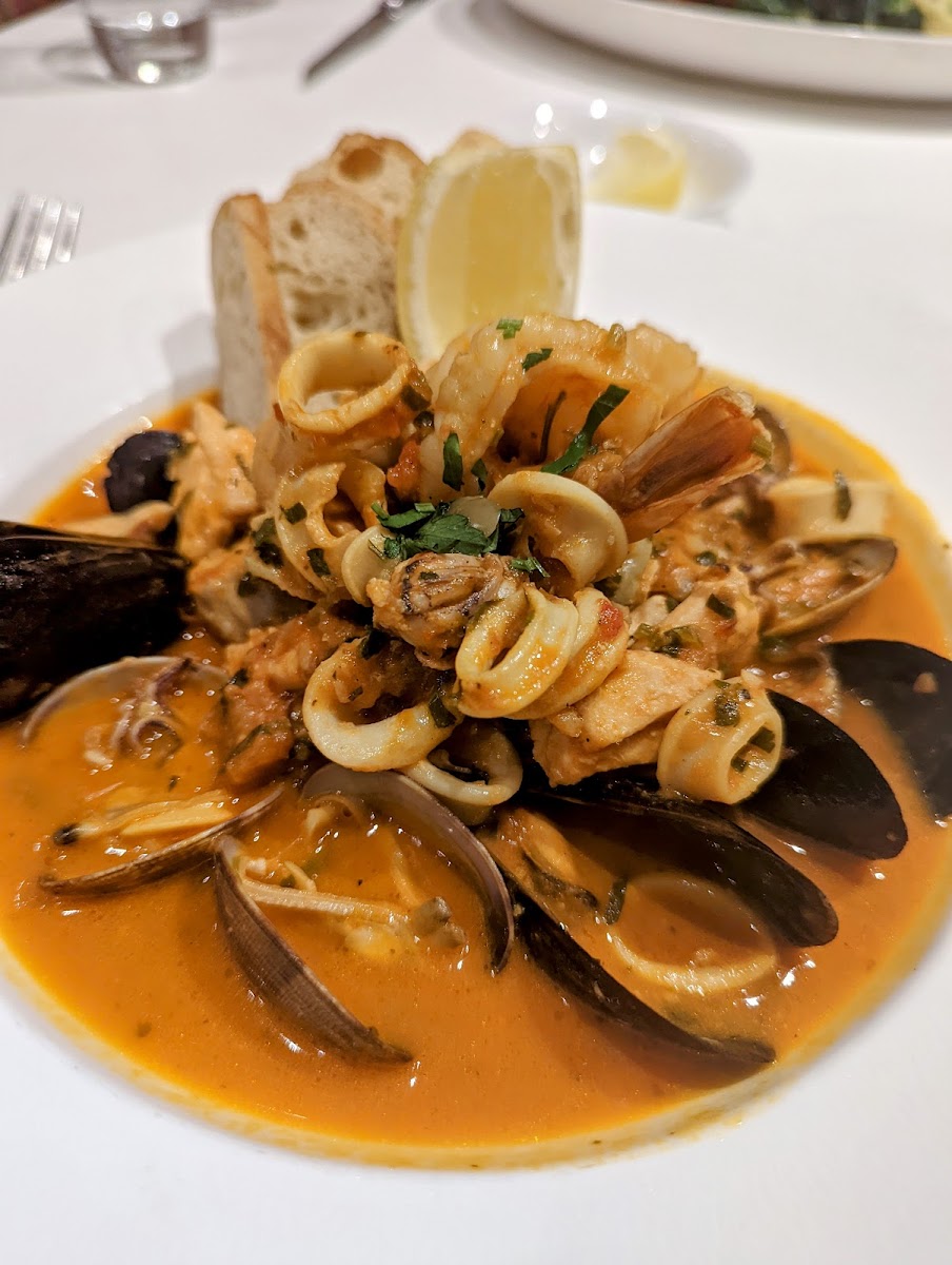 The atmosphere and decoration of this restaurant is definitely one of a kind. The original lamps and decorations make you think you are under the sea. Our waiter was really kind and nice. The drink I got was a non-alcoholic one - I can’t remember the name and couldn’t find it on online menu, but it was delicious. Definitely sweet, but a great treat! We ordered a few differents things from the menu to share. Like the scallops that were delicious. The truffle fries were very good. We had a salad that had nice seasoning (can’t remember what it was). Then, we got some main plates. I got the salmon that was also great. A lot of different flavors. The desserts might have been actually my favorite thing of my experience, I really loved the tiramisu, the creme brulée and the bread pudding. Overall, the food was good, but nothing outstanding in my opinion. It was a great experience nonetheless, just not somewhere I would necessarily go back to. However, the desserts were really good and was a great way to end the meal!